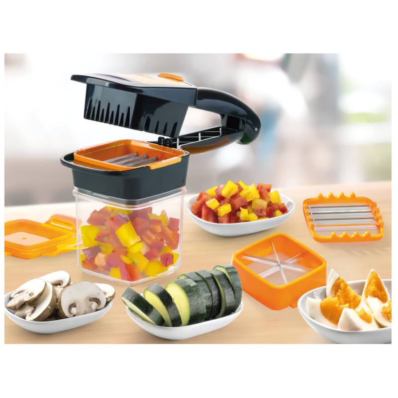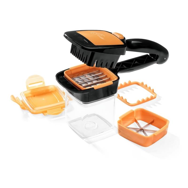 El cortador portátil más práctico del mercado.@Rebana en distintos tamaños y formas, gruesas, finas, cubos, bastones y gajos.@Cuenta con una función de cierre automático que le permite guardarlo de forma segura.
