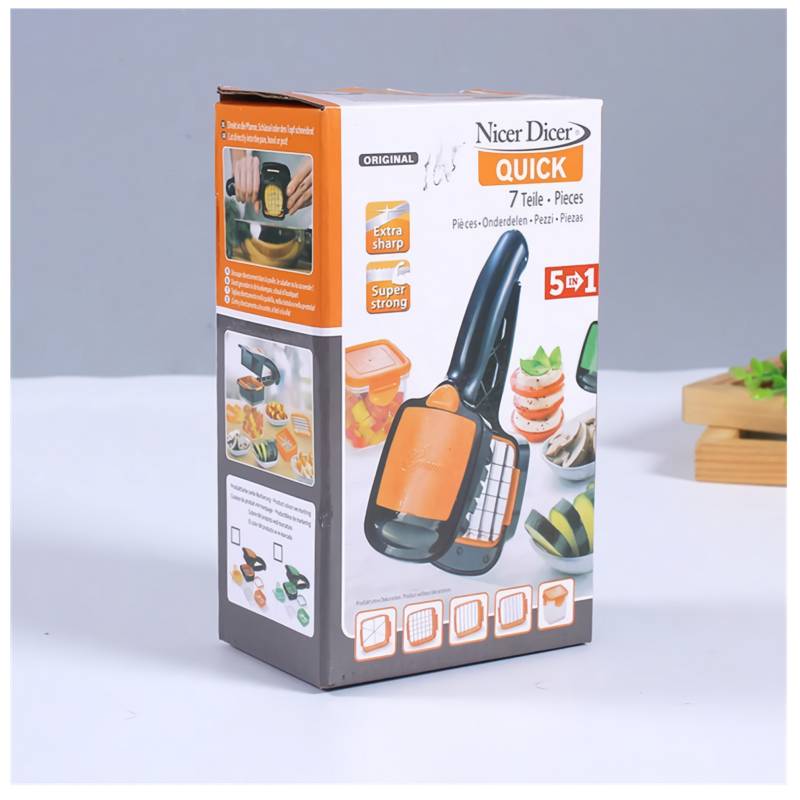 La cortadora de fruta rápida está hecha de plástico y acero inoxidable duradero de alta calidad.@@Corta todo tipo de verduras y frutas.@Cortes perfectos en solo unos instantes.